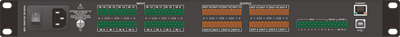 E-D2424是一款24進24出的自動混音矩陣,配備24路模擬輸入和24路模擬輸出,內置反饋抑制,自動混音,矩陣混音,均衡器,分配器,壓縮器等DSP功能,支持Dante網絡音頻功能擴展,通過USB免驅連接電腦軟件控制或RS232/TCPIP連接中控遠程控制,適合用在各種場合的擴音工程。